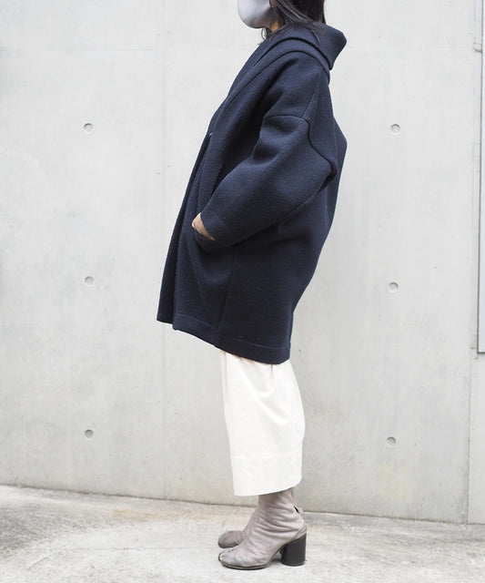 Wool Cocoon Volume Coat (NAVY)