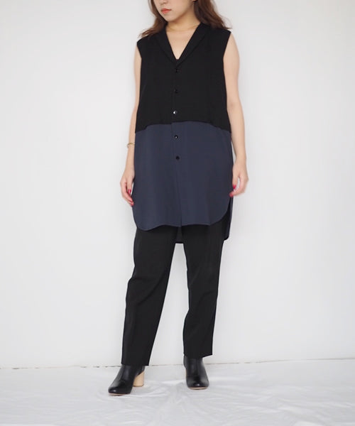 KNOTT 異素材コンビノースリーブブラウス