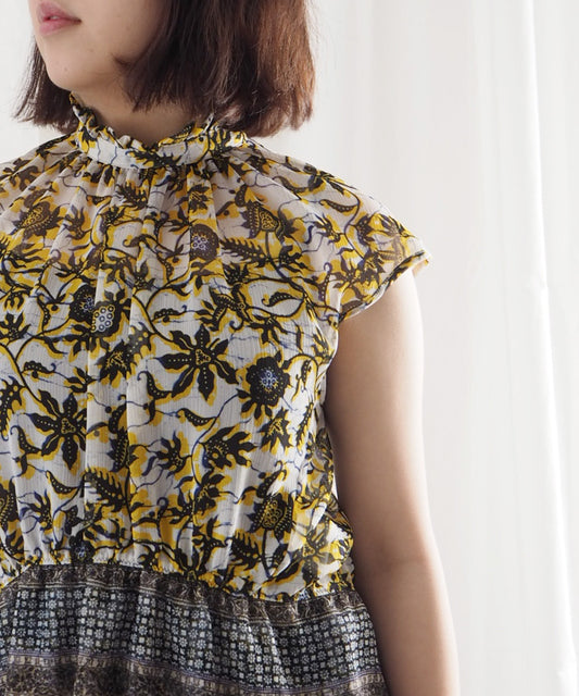 MACPHEE アフリカンバティックフレンチスリーブブラウス